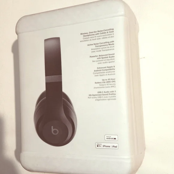 Brand new in package. aturesBeats - Studio Pro - Wireless Noise Cancelling Over-the-Ear Headphones - Deep BrownRating 4.7 out of 5 stars with 10379 reviews4.7(10,379 reviews)Feel every emotion with Beats Studio Pro’s immersive listening experience. A fully custom acoustic platform provides powerful, balanced sound. Personalized Spatial Audio with dynamic head tracking delivers a 360 audio experience¹. When you want to silence distractions, Active Noise Cancelling adapts in real-time to neutralize the world around you. And when you want a more natural experience, Transparency mode seamlessly mixes the world outside with what you’re listening to. With up to 40 hours of battery life², enhanced Apple and Android compatibility³, and flexible connectivity, every aspect of these headphones has been reimagined to keep you connected to the emotion behind the music longer.See more...AppleCare+ for Beats (Sold Separately) [0:44]Experience immersive listening with Beats’ most powerful custom acoustic platformSound that surrounds you with Personalized Spatial Audio and dynamic head tracking¹Active Noise Cancelling (ANC) continuously optimizes for immersive listeningTransparency mode blends your listening experience with the world around youEnhanced Apple and Android compatibility³ with one-touch pairing and deeper ecosystem integrationMore ways to connect: USB-C audio⁴, Class 1 Bluetooth, and 3.5mm audio inputTwo additional EQ-optimized sound profiles wh